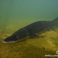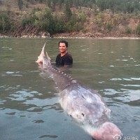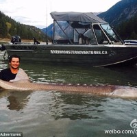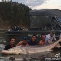加拿大男孩捕80岁“猪鼻”鲟鱼 580斤重