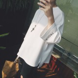 韩版网红露肩字母心机短袖t恤女宽松2020新款夏季小众中长款T恤裙