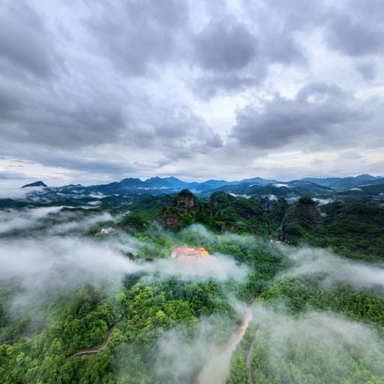 五指晨雾影梵刹